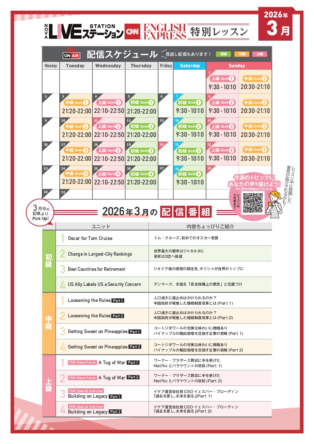 【ウィークリースポット】出店スケジュール