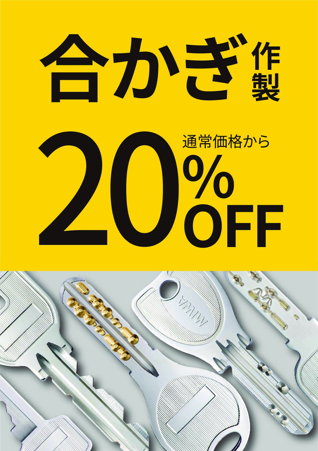 【期間限定 合鍵作製20%OFF】 5/10(日)まで