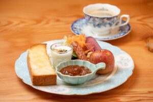 新鮮な野菜にこだわったサラダを中心に、丁寧に仕上げたパンやドリンクをセットにした、バランスの良い朝食が魅力です。体にやさしく、1日のスタートをしっかりサポートいたします。